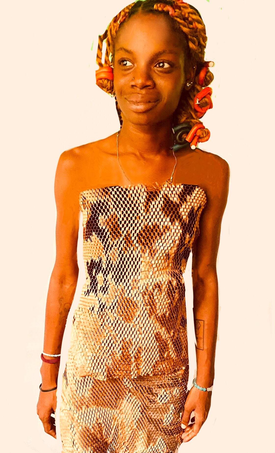 Some of her pieces are 100% recycled, eco friendly, made from paper to reduce waste.